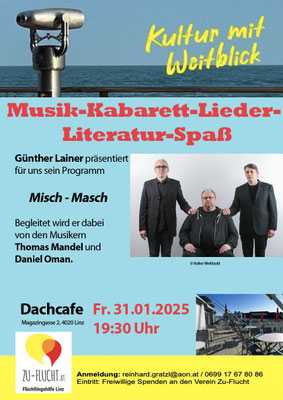 Die Tickets sind ab sofort per Mail info@zu-flucht.at oder telefonisch unter 0699 11033037 zu bestellen.